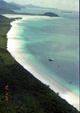 | ホワイトヘブンビーチ | ウィットサンディー諸島の東海岸に位置するオーストラリアで一番 美しい約8kmに及ぶ白浜のビーチ。 実際ビーチでシュノーケリングするも魚はなく透明度もそんなに良 くないが、ビーチから見ていると透明できれい。さらに上空から眺め るとすごい絶景になる。 |
