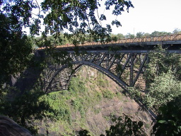 ずぶ濡れになりながら、ヴィクトリアフォールズ鉄橋にたどり着く。 |