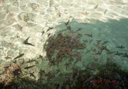 ボラボラ島のダイビングスポットは、水流の穏やかなラグーン内に多く初心 者向きのポイントが多い。 またマンタ・レイ・バレーなどマンタと遭遇しやすいポイントもある。 今回潜った時もマンタに遭遇したらしい。(3人で潜って自分以外2人はマン タを見た。) また3mのレモンシャークのいるポイントもあり、それなりに楽しめる。 ただ、魚影はそれ程ではなくパラオなどと比べるとやや劣る。 |