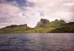 太平洋の真珠と称されるボラボラ島は、周囲40kmの火山島で あり、島の中央にはオテマヌ山とパヒア山がそびえ、その周囲に はエメラルド・グリーンのラグーンが取り巻き、世界中のカップルが 夢見る楽園である。 |