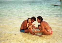 7日目、モアナ・ビーチコマー・パークロイヤル・ボラボラからホテル・ボラボラまでのビーチを2人 で歩く。昨夜は空中分解したが、再び和解する。 ビーチの水の色は、物凄く透明で感動する。 |