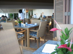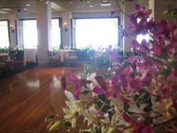 オーキッドの朝食 「ハレクラニ」のメイン・ダイニング。 オーシャンビューの店内では、新鮮なハワイ産のシーフード料理などが味わえる。 今回は、ここで朝食をとったが、ワイキキビーチを望むオープンテラスに案内され、食事もおいしく優雅な雰囲気を味わえた。 |
