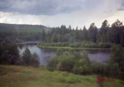 朝食は卵焼きで、普通の卵がこんなにおいしいとは今まで感じなか った。というか、他に食うものがない。 車窓は、大草原、森林、川、同じ景色が繰り返される。 午前中は、再びゲルムントさんのロシア語講座。 途中、駅に降りてパン、パンケーキを買う。 午後は、何もすることがなく廊下で音楽を聴きながら車窓を眺めてい ると、ロシアのかわいい女の子が、話かけてくる。まさか、オレに気 があるのか?自分もゲルムントさん仕込のロシア語単語を駆使して 話すが会話にならず。お互いかたことの英語で会話する。結局、女 の狙いは、僕じゃなくウオークマンにあった。 夜は、廊下で、アコーディオンによるロシア民謡(トロイカ、ステンカラ ージン等)の演奏、手拍子、それに合わせて踊っている人もいた。 こうして、2日めの夜は更けていった。 翌朝4時、チタでゲルムントさんと別れる。 |