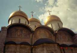 ウスペンスキー寺院 クレムリン内にある歴代皇帝の戴冠式が行われた大聖堂。 1479年完成。とくに見ものは、聖ゲオルギー像、三位一体像などである。 |