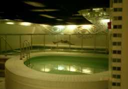 シリアラインに乗り込む。 中は、予想どうり、かなり豪華だった。 きれいなレストラン、BAR、プール、ディスコ、サウナもある。 1〜3Fは客室、8Fは免税店、4Fはゲーセン、sleep in、ソファーのある部屋がある。 まず、ソファーをキープし、sieep inのベッドをキープしてからサウナへ行く。 |