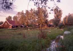 風車の周りは、農場があり、小川が流れ、のどかな風景が広がっている。 |