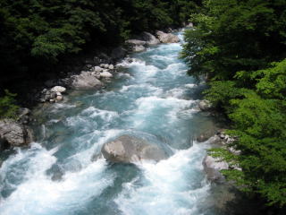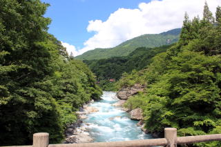 を望んだ。すぐ脇には、透明な蒲田川が流れ湯船に