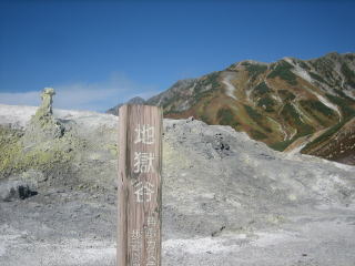 硫黄臭が立ち込める地獄谷の独特の風景。