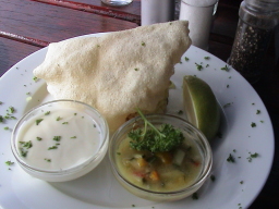 レストランでは、油断をしていると、バンブーが料理を狙って襲ってく るので注意。この日も一人襲撃をうけ、お店の人が、木の棒で追い 払っていた。 |