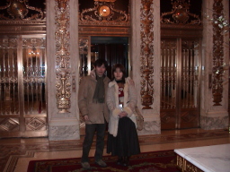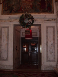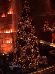 トランプタワーのクリスマスツリー 1983年、大富豪ドナルド・トランプによって建てられた多目的ビル。入り 口、ビル内はゴールドで彩られ、壁には滝が流れゴージャス。6階までは 高級ショッピングモール、21階から上は超高級アパート。 今回は、ビル内にセンスのよい赤いリボンを中心としたクリスマスツリーが 飾られていて素敵だった。 |