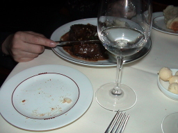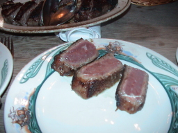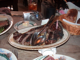 VS神戸牛、松坂牛のステーキ 口の中でトロケル感覚では、日本のステーキの方が上 ただ、ピータールーガーのステーキは、噛みごたえがあり かといって、硬くもなく、肉本来のうまみがあり、まさに肉そのも のを食べてるかんじ、同じ赤身でもブロンコビリーなどの肉とは 明らかに違う。どちらがうまいかは、好みにもよるが、自分は 最近40歳を過ぎてから急に脂っこい物は胃にもたれるように なってきたため、ピータールーガーのステーキはうまかった。 それでも、どちらか1つといわれれば、松坂牛。 |