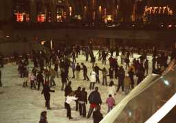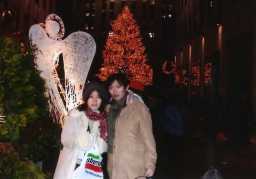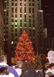 ロックフェラー・センターのクリスマスツリー レインボーグリルは、ロックフェラーセンターの65階に在り、1階 に降りて外に出るとクリスマスツリーの光の世界が、目に飛び込 んでくる。 |