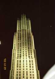 レインボー・グリルからの夜景 レッドとグリーンでライトアップされたエンパイヤステートビルが、 目の前に迫り、周りの夜景が、オレンジ色に輝き、まさに絶景 今回のNYの旅では、ここの夜景が一番すばらしかった。 |