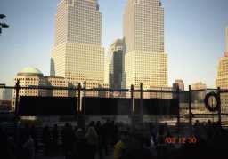 この地に立つとあの日の事を思い出す。 実は、今回の旅は、もともと、2001年9月22日に行く予定で、 Airチケットもホテルも既に手配してあとは行くだけの状態だった。 その日の夜、たまたまテレビをつけると、いきなり煙を上げたワー ルド・トレード・センターが目に飛び込んできて、数分後、2機目の 航空機がビルに突っ込み、その後、NYの旅もWTCも崩れ落ち 多くの人命が失われたあのシーンが蘇る。 あのシーンは、テレビで見てて映画のようであまり実感がなかっ たが、こうして、その現場を目の当たりにすると、あの日に起きた 事は、現実であり、そう思うと、いたたまれない気持ちになる。 また、10年程前に、ここに2つのめちゃんこ巨大な建物があり その大きさに驚かされた自分がいたが、今は、あんなに巨大な ビルが、ここに消えていることに驚愕している自分がいる。 |