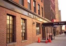 4日目、ピーター・ルーガー・ステーキハウス 創業1887年、マンハッタンの対岸ブルックリンに位置する。「ザガット」のNY ステーキ部門で10年以上首位を続けるニューヨークNO1のステーキハウス。 霜降りではなく赤みの肉だが、肉本来のうまみがあり肩書きだけでなく本物の 店。 ブルックリンにあるため交通はやや不便。自分たちはタクシーで行った。 この途中の広大な墓地とその背後のマンハッタンのビル群の景色は圧巻。 また、カード不可なので注意。 |