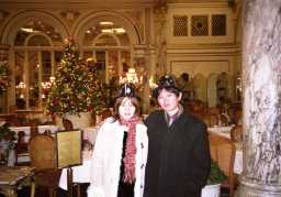 ワン・セントラルパーク・サウス プラザホテル一階にある高い天井に赤色の巨大シェードを被せたシャンデリ アがいくつも吊るされている内装のレストラン。 <注意>2005年5月〜プラザホテル営業休止 |
