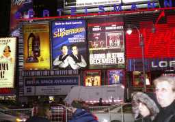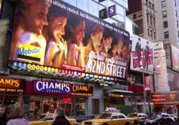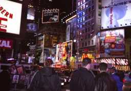 タイムズスクエア 42丁目と7番街とブロードウエイが交差する三角地帯で、かつてニューヨー クタイムズのビルがあり現在は世界で一番賑やかなエリア。 |