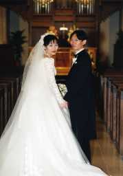 自分達は、ワタベウエディングを通して式を挙げた。 ワタベウエディングは、シャンゼリゼ通りの凱旋門のすぐ近くにあり、式の前にここで、 メークやウエディングドレスの着付けをする。 その後、車が、シャンゼリゼ通りに横付けされ、凱旋門をバックに車に乗り込みアメリ カンチャーチに向かう。 途中、セーヌ川を渡る際、右手にエッフェル塔が見られる。 まさにパリの街の中で挙式を挙げる雰囲気に包まれる。 教会までは、約10分で到着する。 教会に到着すると式の前にビデオや写真撮影、書類の記載、結婚式の打ち合わせを し、いよいよ式本番を迎える。 神父さんの言葉は英語で、自分達の返事の言葉も英語だが心配ない。 要は、どんな時でも一生涯相手のことを愛するかと尋ねられたら、正直に、はい(I will) と答えればよい。 式はあっという間に済んでしまった気もするが、それでも美しいステンドグラスの光の中 で力強く「I will」と答えたシーンは鮮明に残っている。 ワタベウエディングの公式ホームページ |