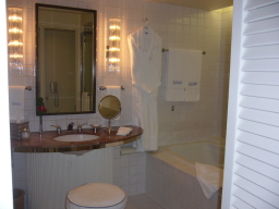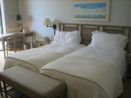 部屋 白が基調で清潔感がある。 ハレクラニのホームページでルームの写真を見たとき、内装がいま いちに思えたが実際は、写真と違い素敵な部屋だった。 |