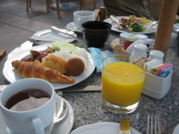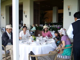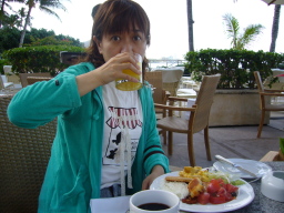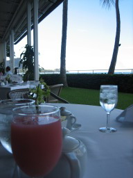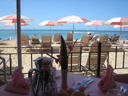 2日目、ハウス・ウィズアウト・ア・キーの朝食 ハレクラニのオーシャンフロントのレストラン。 今回は、ダイヤモンドヘッドを眺めながら優雅に朝食をとった。 |