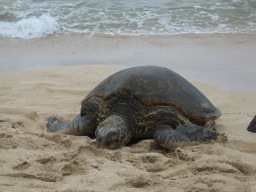 ラニアケアビーチ ウミガメが見られることで有名なビーチ。 自然のウミガメが、見られるというより、人間のギャラリーが多く、ロープが張られていて不自然な感じ。 |