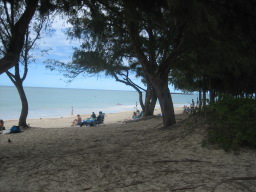 ラニカイビーチとちがいカイルアビーチはビーチパークのため木陰がある。 |