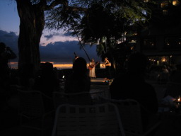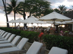 ザ・ビーチバー ワイキキビーチに面するシェラトン・モアナ・サーフライダーのビーチサイドバー。 ここから眺めるワイキキの夕日は最高にロマンチック。 今回は、カクテルを飲みながら夕日を堪能し、そのままここで 夕食を済ました。ガイドブックには、軽食とあるが、それなりに食べるものもあり、十分お腹もいっぱいになった。 |