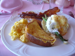 オーキッドの朝食 「ハレクラニ」のメイン・ダイニング。 オーシャンビューの店内では、新鮮なハワイ産のシーフード料理などが味わえる。 今回は、ここで朝食をとったが、ワイキキビーチを望むオープンテラスに案内され、食事もおいしく優雅な雰囲気を味わえた。 |