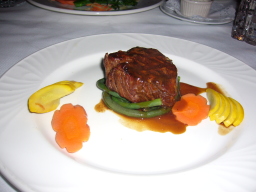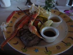 メイン料理はステーキとカニ |