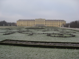 シェーンブルン宮殿 1696年着工、1749年に完成したハプスブルク家の夏の離宮。 マリアテレジアが好んだ美しい黄色(マリアテレジアイエロー)で統一され たバロック式、ロココ式の美しい宮殿。 今回は冬に行ったため庭園の美しい花はなく芝の上には霜がおりていた。 宮殿内のガイド付き見学は、1つ1つの部屋が時間制限があり、ビデオも 写真も禁止で残念。それでも内装は素晴らしく「ベルサイユ宮殿に匹敵す る宮殿を」という時の皇帝レオポルト1世の命も頷ける。 |
