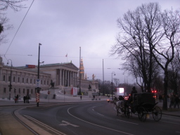 フィアカー:ウィーンの馬車 ウィーン市内には、180台の馬車があり、このうち旧市街を走れるのは58台。 御者は、300人いて免許制。試験は、交通、馬の取扱、観光の知識(建物、博物館など)が問われる。 |