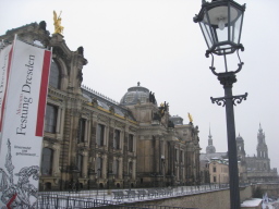 ツヴィンガー宮殿 18世紀に建てられたアウグスト強王の離宮。 ドイツ・バロック建築の最高傑作といわれている。 内部は、5つ(絵画、陶磁器、武器、動物学など)の博物館になっている。 |