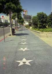 35日目、ハリウッド大通り ハリウッドを東西につらぬくメインストリート。 歩道上には、シルベスタスタローンなど2000人以上の映画スターの手形と名前が並ぶ。 |