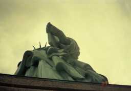 自由の女神 アメリカの独立100周年を記念してフランスから寄贈され1886年に完成したアメリカの象徴的像。 高さ46m、右手にはタイマツをかかげ、左手には独立宣言書を携えている。 |