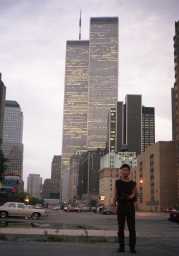 ワールド・トレード・センター ハドソン川を見下ろす110階建て(高さ420m)の超高層ツインタワー。107階に展望台があり、さらに天気が良く、風の強くない日には110階の屋上展望台に行ける。 実際、110階からの景色はすばらしく、キングコングの気分を十分味わえる。 |