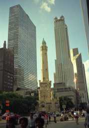 17日目、グレイハウンド・バスでシカゴへ 途中、ひときわ大きな塔が、夜の闇の中に浮かび上がる。 あれは何なんだろう?と思ってまもなく、バスは、トロント に到着する。そこで、ようやくトロントCNタワー(高さ 553m の世界一高いタワー)だったことに気がつく。 その後、デトロイトで入国検査を受けシカゴに向かう。 |