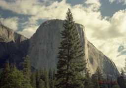 エル・キャピタン 高さ1095m、花崗岩として世界最大の一枚岩 ロッククライマー憧れの絶壁 |