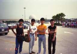 2日目、ウォルト・ディズニー・ワールド エプコット・センター前にて友人と オーランド市の南西35kmに位置する世界最大のウォルト・ディズニーのレジャーワールド。 当時は、マジック・キングダム、エプコット・センターウォルト・ディズニー・ワールド・ビレッジの3つのゾーンから成っていた。 |